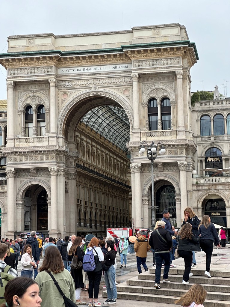 However, you may now call me a fan of Milan. It was a crazy weekend to be there, on what amounted to Italy’s Fourth of July, but the weather was perfect — fairly cool, no smog, no clouds — and the energy was off the charts. The Galleria shopping area (pictured above) was teeming with celebratory folks, the bars were jammed and the ubiquitous fashion boutiques were all open. I could have shopped til I dropped except for the price tags on the stuff I was drooling over. I mean, who spends $5,500 on a sports coat even if it’s a Brunello Cucinelli? Pas mois.